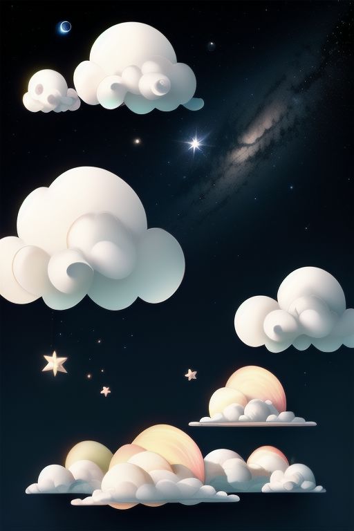 (Apple), fluffy, floating, clouds, sky, stars, space,
