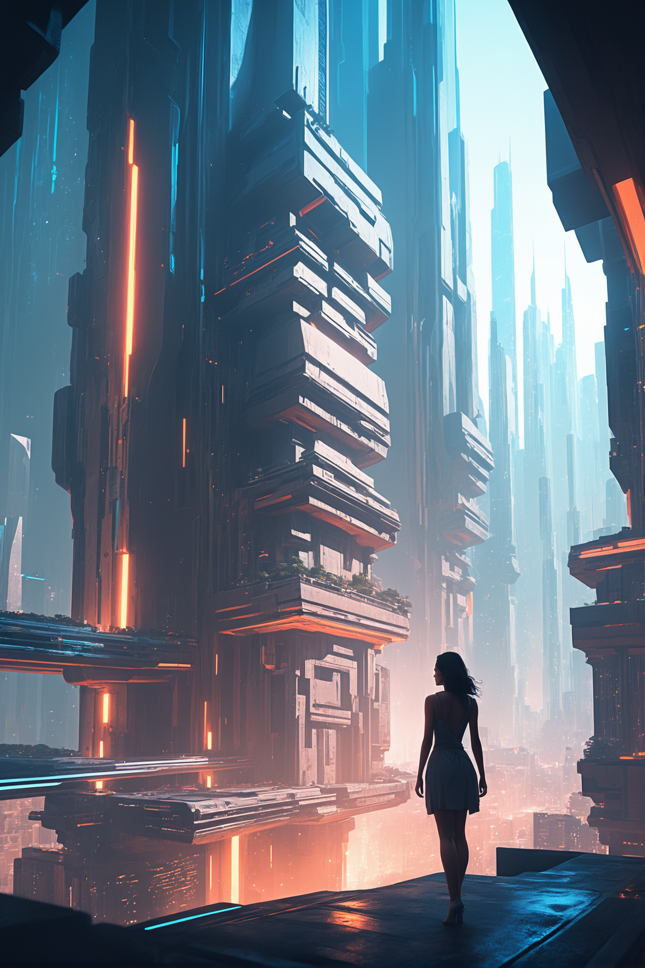 technobrutalist, cinematic color grading, <lora:EnvySendNoodzXL01:-0.5>1girl, woman, beautiful, a amazing fantasy metropolis edge of reality, masterpiece, by Bastien Grivet<lora:EnvyTechnobrutalistXL01:0.5>