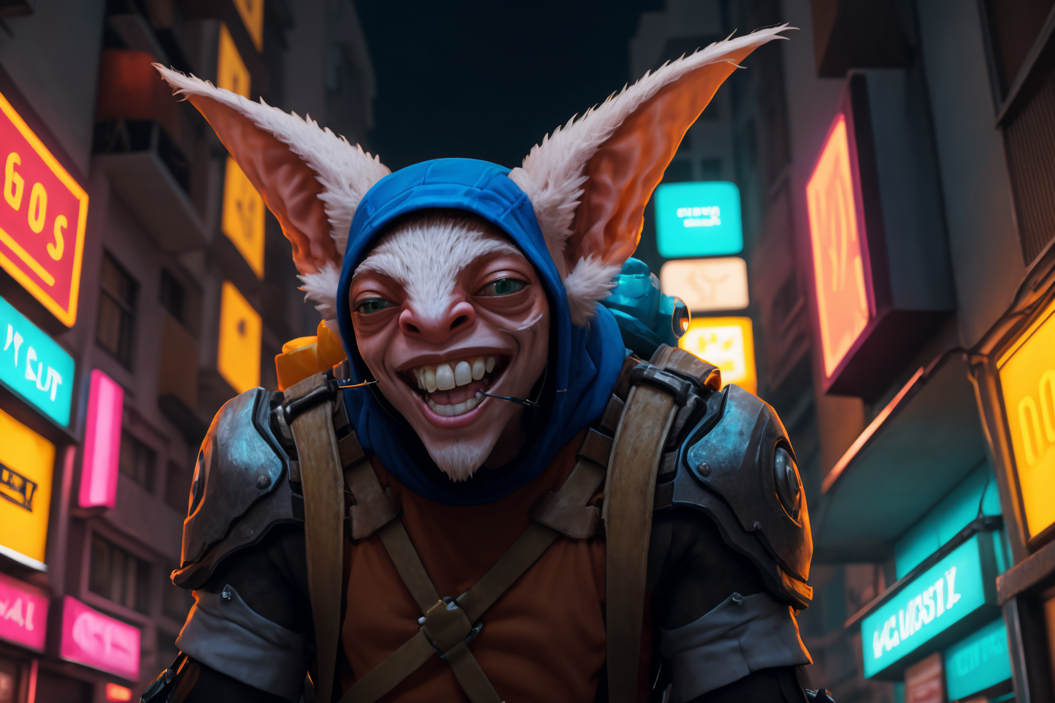 masterpiece, best quality, 1boy, meepo, animal ears, smile, backpack, smile, looking at viewer, solo, cyberpunk, solo, neon light, night, cyberpunk city background <lora:Meepo:1>