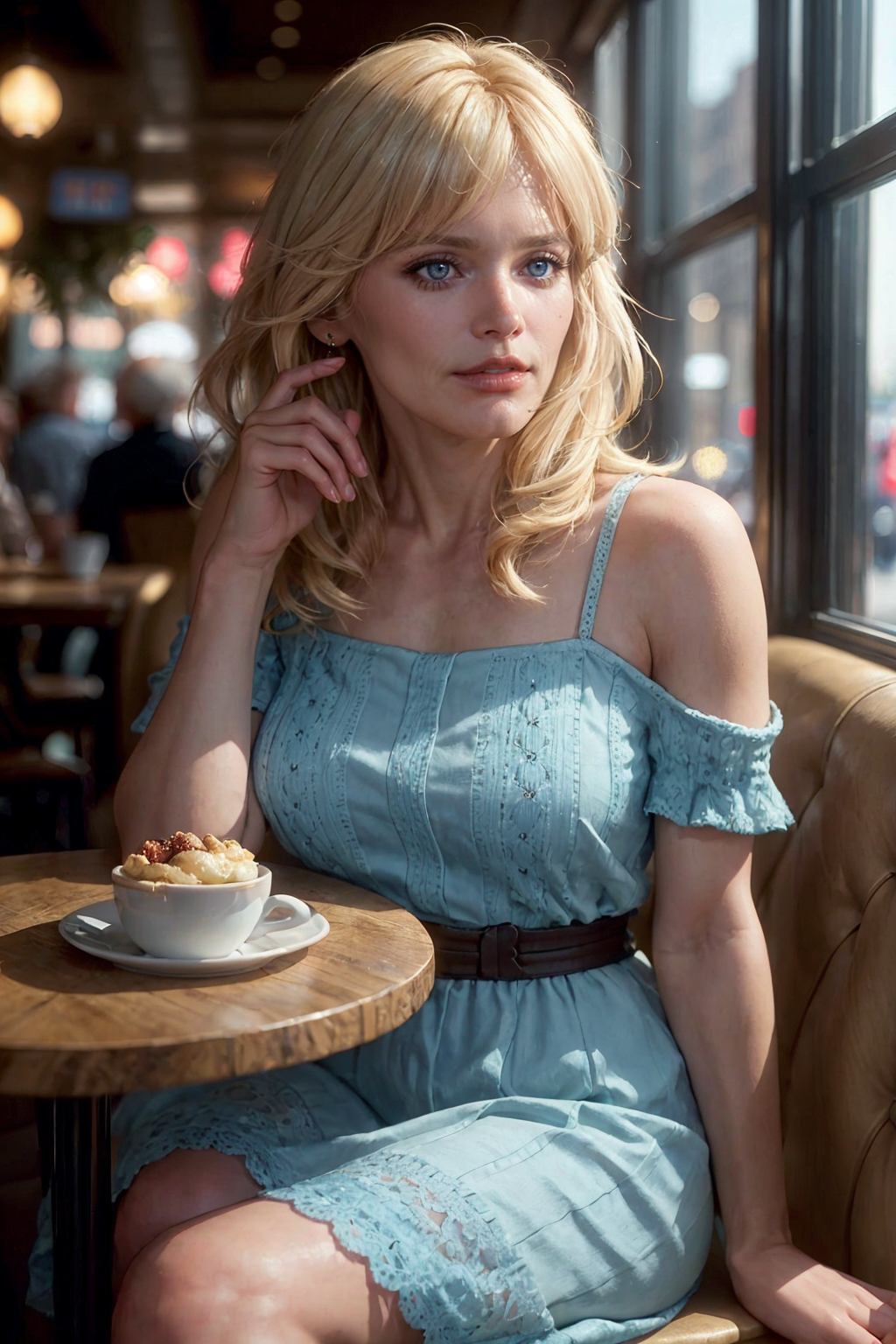 Ultra-HD-details, (lively-looks), photo of mature blonde r4nd1, sitting in a crowded cafe, having a date with a old man, bokeh, detailed skin texture, masterpiece, high quality, intricate details, wide angle, cinematic establishing shot, subsurface scattering, color grading, layered depth, parallax effect, soft focus foreground <lora:r4nd1_16_8_4_1-step00001400:0.9>