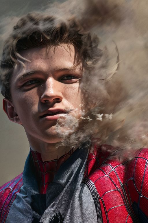 (masterpiece), 1man, (tom holland) as spider-man, portrait, ((decef:1.15)), smoke fragments, simple background, <lora:decef:1.15> <lora:tom-holland-v2:0.7> <lora:add_detail:1>