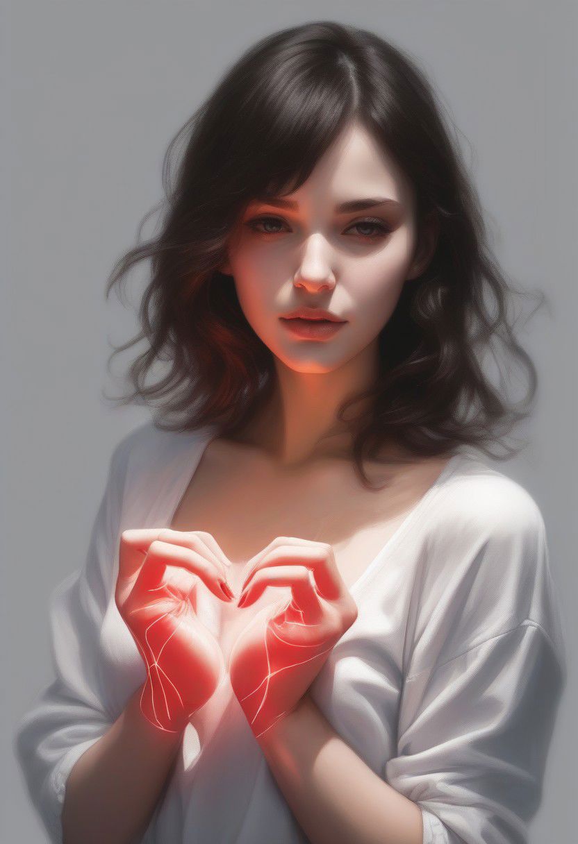 realistic, sexy girl making a heart with her hands