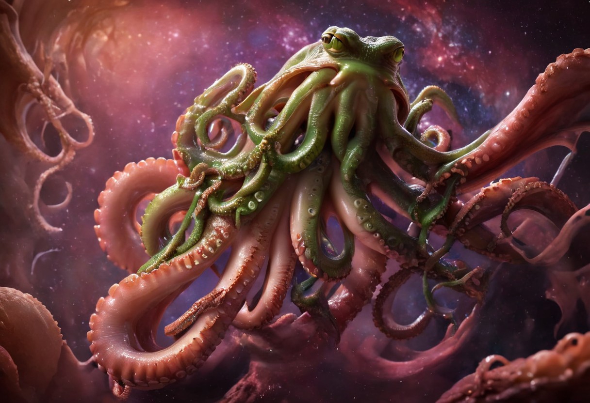 ((tentacle, tentacles, Cthulhu, curled tentacles from a gigantic creature in outer space, creature coming through portal from horror universe)), 4k render, cryptid, sharp focus, (best quality, high quality:1.3) , ((tentacle, tentacles, Kermit Cthulhu, curled tentacles from a gigantic kermit chulhu in outer space, creature coming through portal from horror universe)), 4k render, beautiful Cthulhu digital art, , creature, cryptid, masterpiece, sharp focus, (best quality, high quality:1.3), kermit the frog