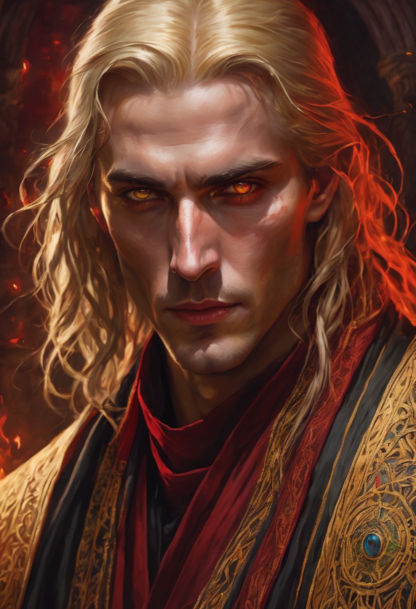 score_9, score_8_up, score_7_up, score_6_up, rating_explicit, score_9, score_8_up, score_8, epiCPhoto, realistic, (best quality:1.1), (masterpiece:1.2), (realistic:1.2), (detailed:1.1), (highres, best quality:1.2), background(village), (ultra HD quality details), (light blonde hair with red tint:1.2), (one eye red, one eye golden;1.3), long hair, sorcerer robes, male, aasimar, sorcerer, hellspawn, wingless, half demon, fantasy, D&D, 1man, clothed, hyper resolution, perfect shadows, perfect lighting, best reflections, extreme detailed face, perfect skin textures, (face close up:1.2)