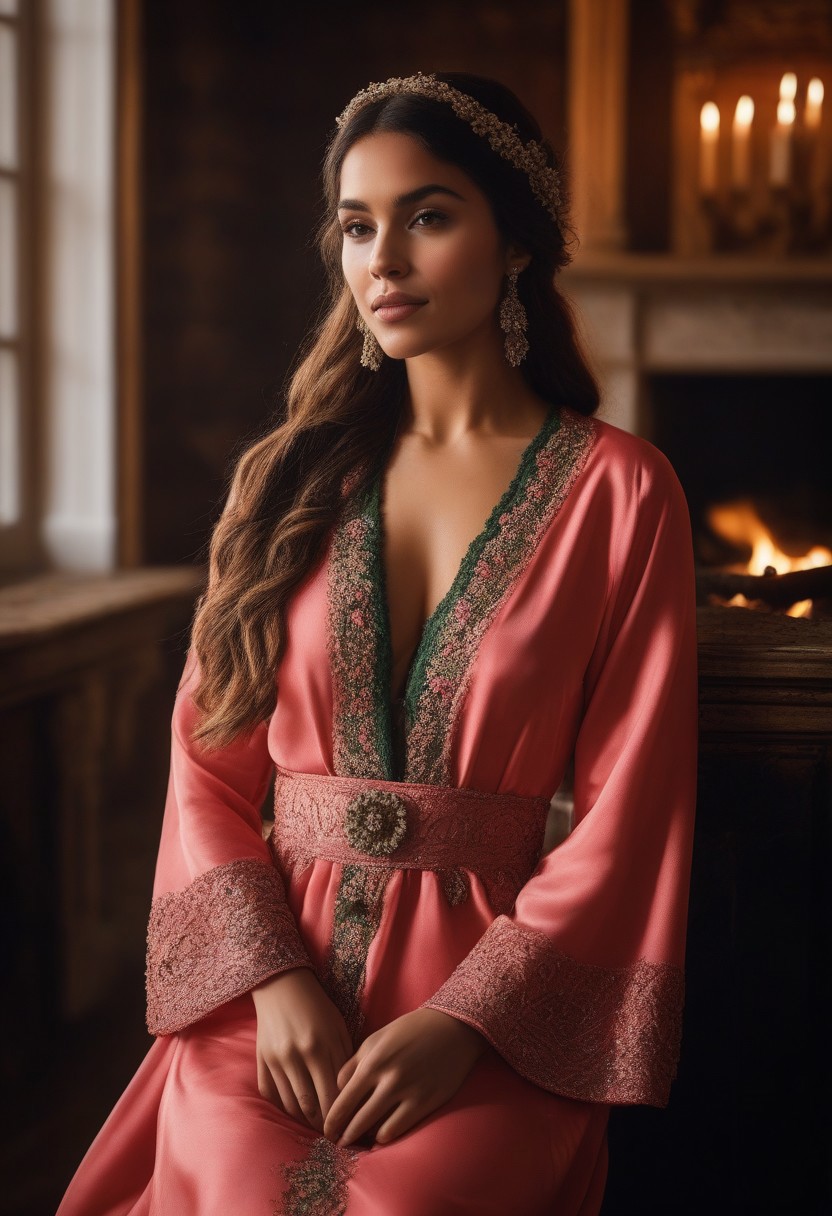 Alba Garcia. Cantabrian blended southafrican woman, 23yo, 2 long honey braids and dark green-honey eyes. Oval shape face. Almond shape eyes. Thin nose. pulitzer shot. shot from above. BREAK looks confident, orgasm, smiles, secure, delicated, a bit embarrassed. looks like waiting for an answer. BREAK a close up posing for a picture, gorgeous model, full product shot, topless, coral red, full length view, full body ,floral patterned wedding underwear clothing, full body wide shot, meaty breasts. exposed detailed vagina, leaking pussy. BREAK Braless. perfect erected big nipples. Her clothes are unbuttoned and show her beautiful bare body. Majestic princess, very seductive. wide-open unbuttoned v-neck transparent pink silk (dressing gown) and fells over the shoulder. Sit on the floor with wide open spread legs in front of the fire place throwing wood. BREAK in a cozy Victorian royal palace. a fireplace with a high fire that iluminates the scene. Plenty of candles. Warm light from early spring comes thru dusty windows. BREAK (Masterpiece), (best quality), (detailed), (8k), (cinematic lighting), (sharp focus), (intricate). Hyper detailed, amazing background, highly defined details, 32k UHD, lifelike photo, vivid colors, photorealistic.