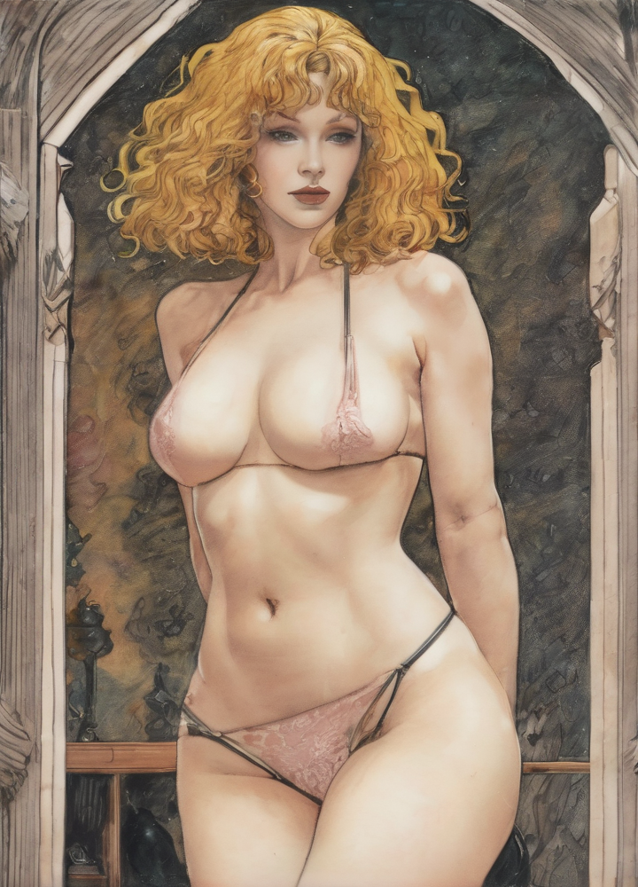 erotic drawing by Milo Manara, nsfw, explicit nudity, naked
