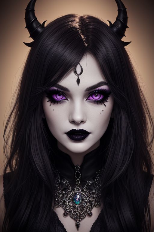 glamour photography of a evil goth girl, edgy vibe, dark, mascara, eyeliner, purple dragon eyes, ornate jewelry, smoky eye makeup, full narrow lips, narrow face, white teeth, skin pores, shiny skin, grainy, harsh flash lighting, sepia tone
