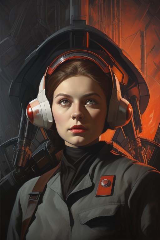 masterpiece,best quality,<lora:tbh262-:0.8>,illustration,style of soviet, portrait of star wars robots