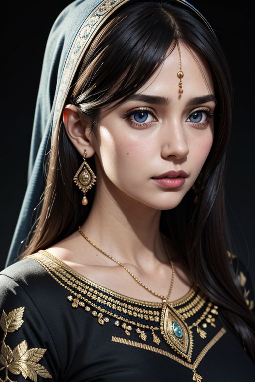 xyzsanshalwarqameez, (highly detailed:1.3), 1girl, solo, (3 quarters body:1.3), straight on, middle aged, 35 years old, slight smile, blue eyes, zig-zag pattern, embroidery , 1girl, embroidery, black dress, shalwar, gold earrings, Ultra-detail, (highres:1.1), best quality, (masterpiece:1.3), cinematic lighting, (highly detailed face and eyes:1.3), <lora:xyzsanshalwarqameez:.8>