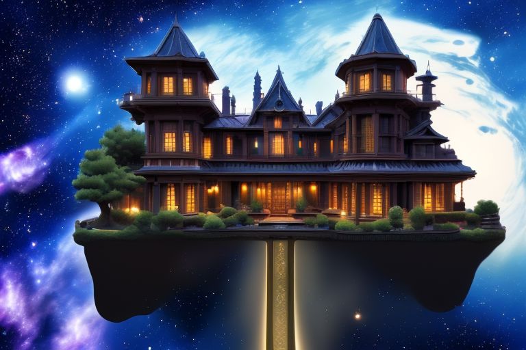 Majestic house, mansion, castle, galaxy, space, A house in the galaxy