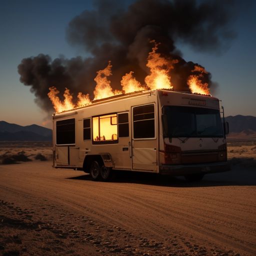 Winnebago, on fire, inferno, desert,