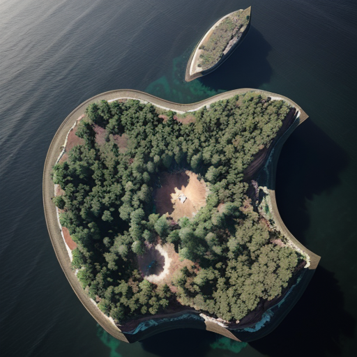 birds eye view, top view of the island, nature, forest, grand canyon, rocks, ultra realistic, highly detailed, 8K render, ocean on background, tilt 45 degrees