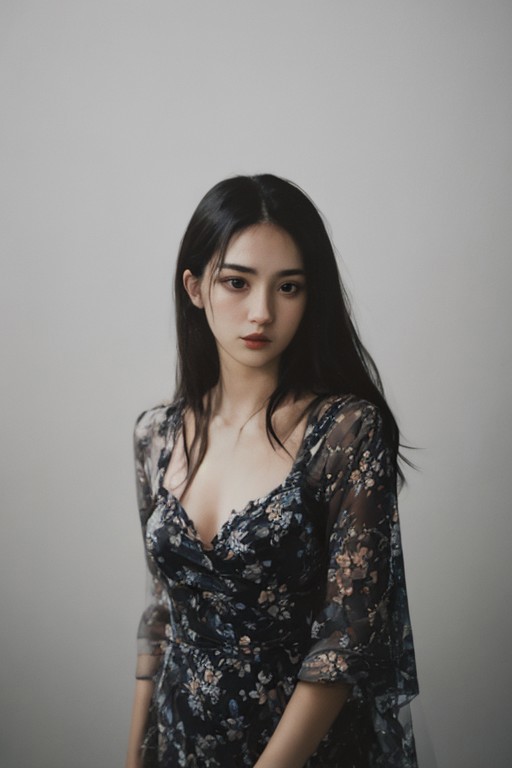 instagram photo, front shot, portrait photo of a 24 y.o woman, wearing dress, beautiful face, cinematic shot, dark shot