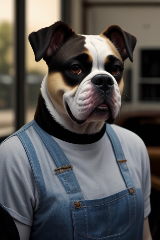 anthro,female,solo,dog,drool,chubby cheeks,fat,canine,bulldog,human hands, big tits,overalls,mechanic,mechanic shop,short hair,piercings,tattoos,grease stains on body,grease stains on clothes,car,car motor,grease,,realistic fur,channel hair, detailed background, realistic, photorealistic, ultra realistic, 8k,spaniel_Anthro