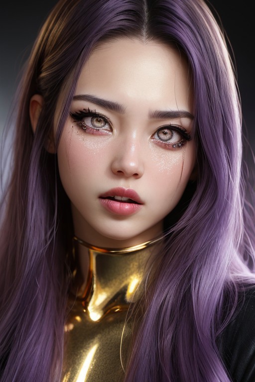 [[Lydia]] beautiful face, glasses, soft skin, lightly made-up soft lips purple Hair (((purple Long hair 1.6))) (((golden eyes 1.6))) golden Sparkling eyes ((Big Detailed beautiful eyes)) ((ultra detailed Art)) beautiful eyes in love glowing skin, sweaty skin Perfect line guidance Clean, sharp edges 1woman, solo, eyeliner, gorgeous lips, medium big breast ahehalf, tongue out,saliva,drooling,trembling,constricted pupils