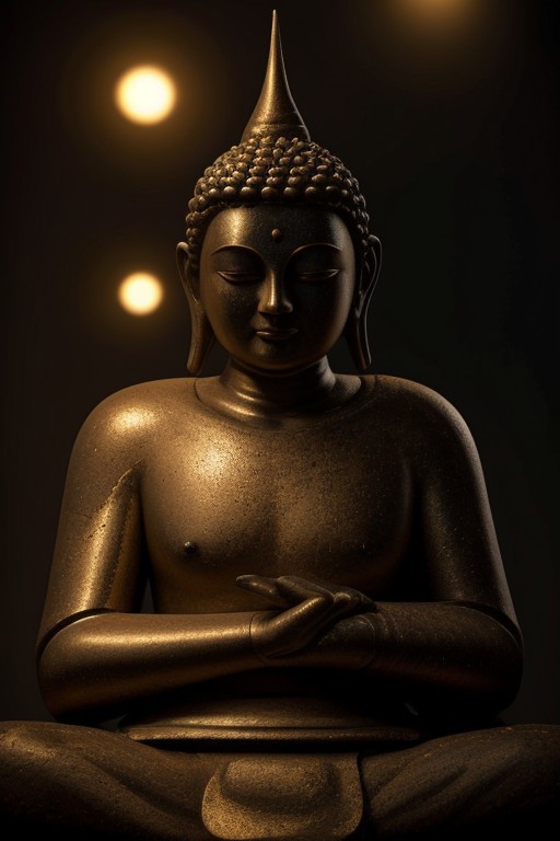 Something that cannot be described: Late at night, a huge golden Buddha statue with only its upper body was floating in the air. Behind the Buddha statue was a huge pitch-black figure with many pitch-black tentacles extending from it. FHD, masterpiece, realistic style.