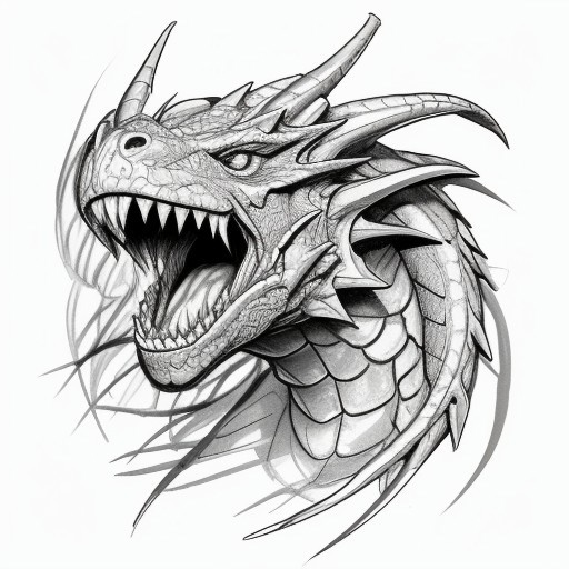 Sketch of a dragon. Amateur. Rough lines. White background.