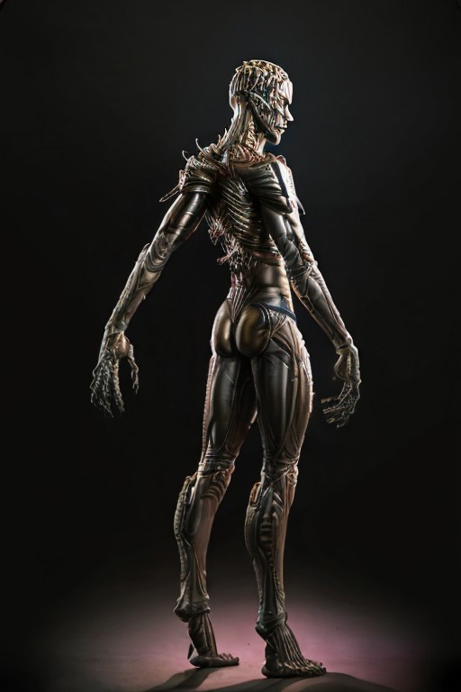 high quality, 1boy, species_sil, <lora:sil:0.75>cinematic lighting, epic, highly detailed, handsome, 29 years old, blue eyes, digitigrade legs, glowing eyes, full body, bald,