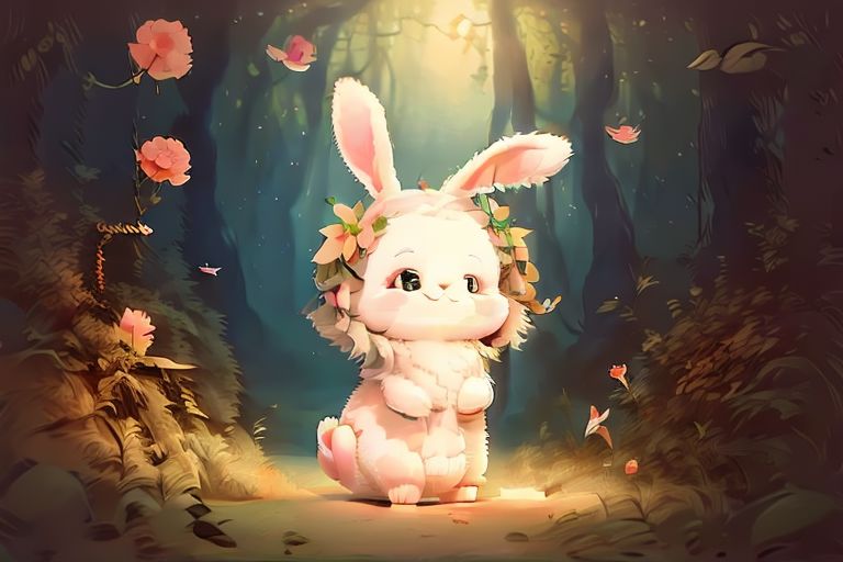 score_9, score_8_up, score_7_up, score_6_up, score_5_up, score_4_up, masterpiece, realistic style, hyper realistic style, bunny, forest, playful, happy, nighttime