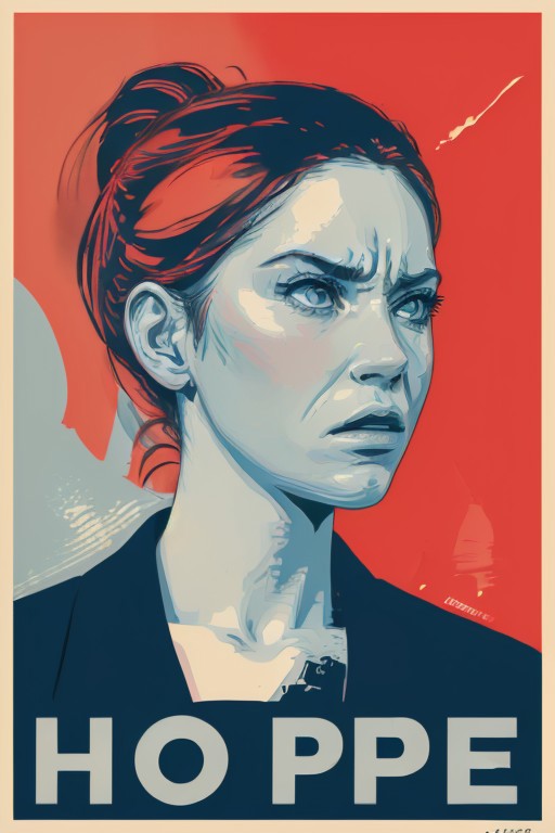 1girl, fine detail, hope poster, limited colors, limited palette, angry