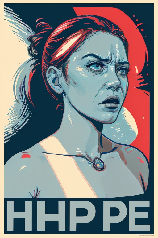 1girl, fine detail, hope poster, limited colors, limited palette, angry