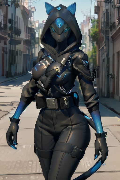 sexy woman, mask, black leather outfit, cat woman, blue eyes, blue ears, 4k, no blur