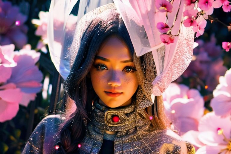 (This is a beautiful, intricate, (romatic) fantasy image that emphasizes beauty and grace.) Generate a blind curvy woman with soft natural freckles. Her face is important and should be (perfectly formed) with (beautiful puffy lips) and (perfect features). The image exudes ethereal beauty and soft fantasy, with shimmering shades of pink throughout. Surround her with eternal roses in shimmering shades. Ensure perfection in her face, hair, and eyes. Include sweet and detailed birds and soft, luminous flowers and detailed roses. Utilize dynamic composition and dramatic lighting and cinematic lighting to create an interesting fantasy image. The background of the image is interesting and ultra-detailed, with soft fantasy lighting and gradients. Include fantasy details, cute aura, colorful, and interesting magical background. The image's background is decorated in shades of pink, shimmer, glitter, and fantasy details like colored bubbles and cosmos. Include subtle freckles, diffused realistic skin tone. Incorporate elements of high fantasy, whimsy, and detailed elegance. English rose, princess, courtesan, noblewoman, sweet, lovely, calm, lovely, shimmering, glimmering, glittering, astrological fantasy, (((masterpiece))), (highest quality), magic rose, fantasy garden, beautiful face, perfect face, puffy lips, interesting, shy smile, fantasy elements, magic rose, beautiful eyes, perfect puffy lips, jewel tones, luminosity. Taken with a canon camera.