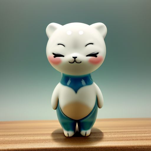 , porcelain animal, ceramic figurine, chibi, cute, 1girl, ^ ^,, close-up, closed eyes, comic, cowboy shot, emphasis lines,, from below,, highres, puffy, smile, solo, standing,