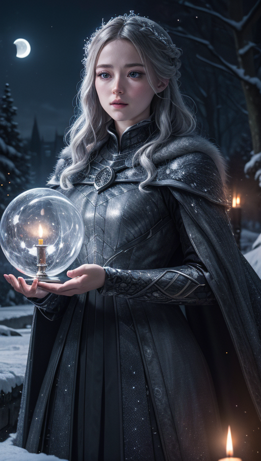 hyper detailed masterpiece, dynamic realistic digital art, awesome quality,candlelit exit,moonlight winterfell,pensive ingress depth of field (dof),cosmic web, wasting,cultural