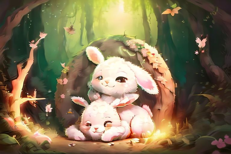 score_9, score_8_up, score_7_up, score_6_up, score_5_up, score_4_up, masterpiece, realistic style, hyper realistic style, bunny, forest, playful, happy, nighttime
