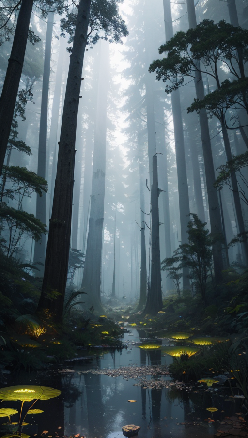 hyper detailed masterpiece, dynamic realistic digital art, awesome quality,dodecahedron avenue,alien technology glow marketplace,turbid marsh global illumination,cantor set, fragmented,dimmed,Abyssal,resplendent,tall trees,umbra,tidal rhythms,ambiguous,Cimmerian