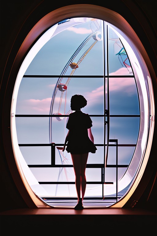 YZA Voku style, silhouettes in a space that feels like space, spiritual environment, Ferris wheel