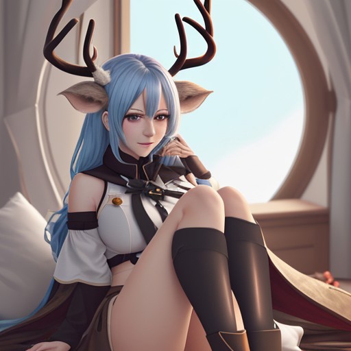 voroshilov from azurlane with deer ears, antlers, hooves, and a deer tail