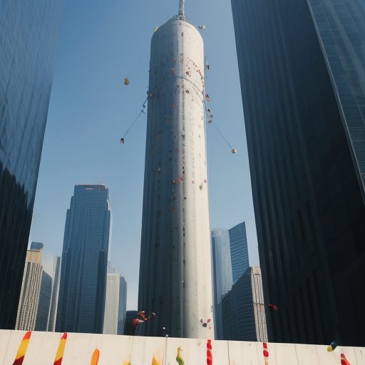 a giant monster made of sprinkles and candy, sucking on the lollipop antenna of a skyscraper