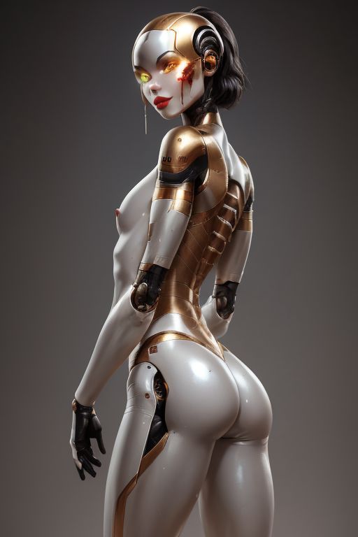 Cyborg, navel, Luminous eyes, colored skin, blood, simple background, portrait, science fiction, ass, 1girl, Female Breasts: 1.3, Nipples, realistic