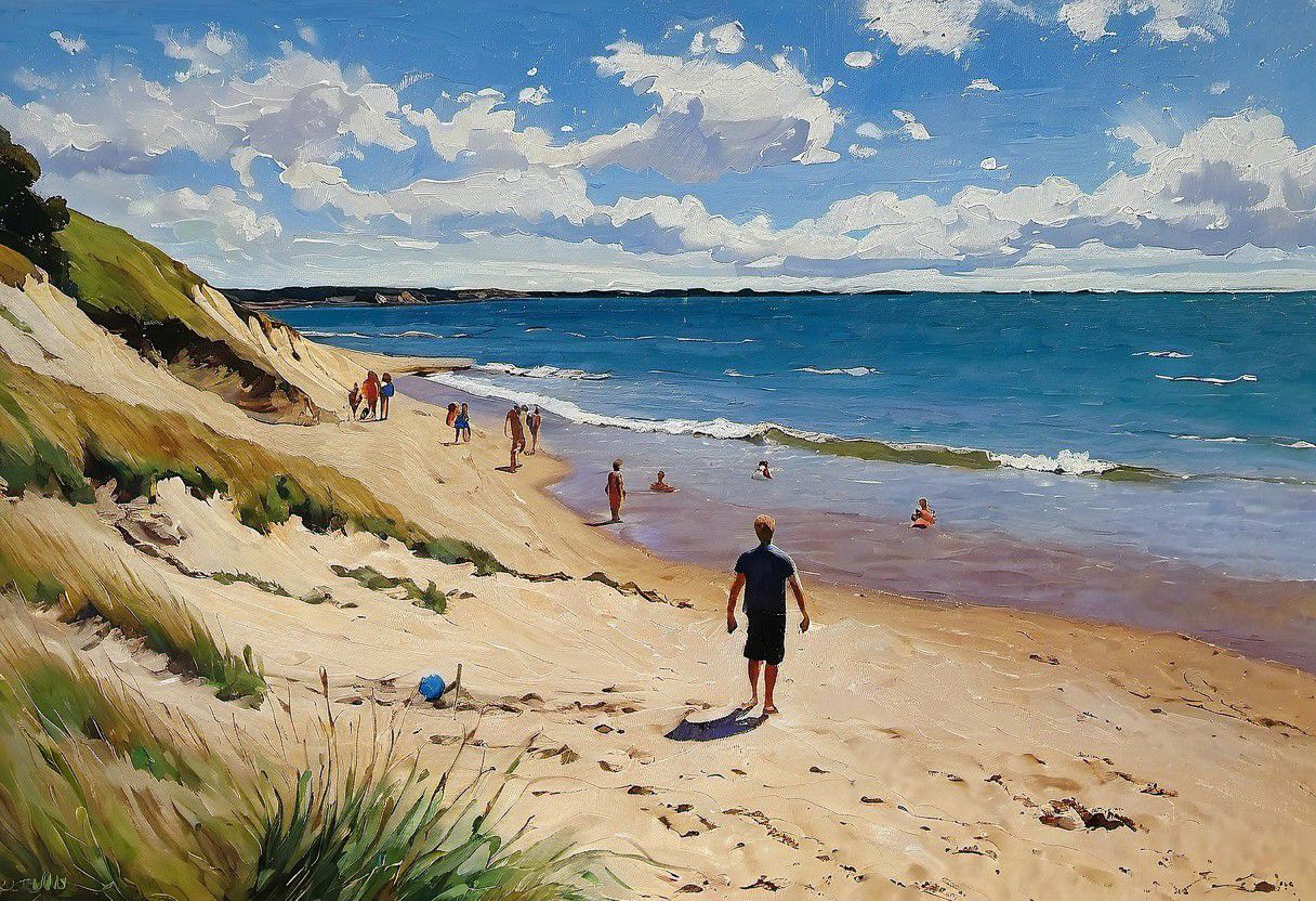 ((Anime Oil Painting)). Studland Nudist Beach in summer