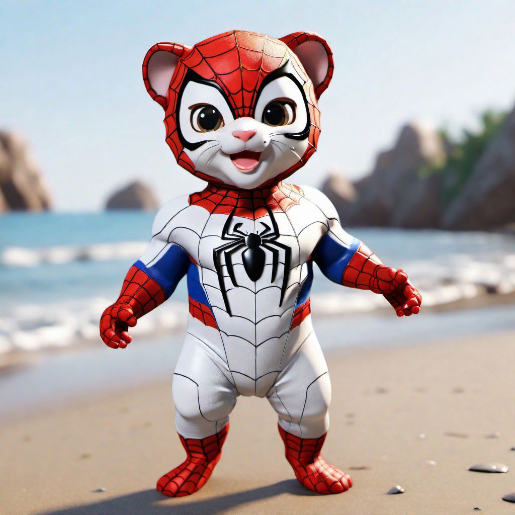 Masterpiece, best quality, portrait, cute baby tiger, wearing white clothes, (standing), smiling, beach backstage, 64k UHD, excellent quality, high resolution, ((Spiderman style))) BadDream Unreal Engine
