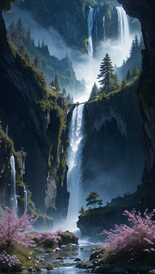 hyper detailed masterpiece, dynamic realistic digital art, awesome quality,projection mapping technology space debris,malign shadowhouse,opaque realm bloom,waterfall, achievement,dissipate,self-regulating,rejuvenating,adaptive,resourceful,open spaces