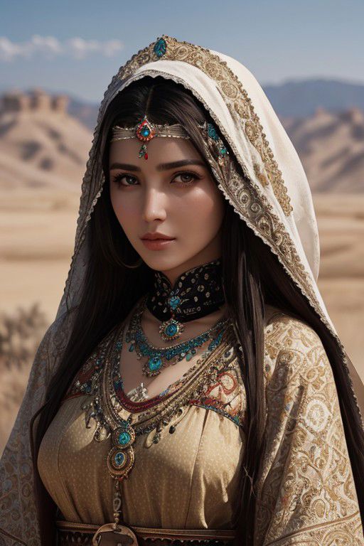 Photorealistic ultra HD 8k old time turkish steppe beautiful woman