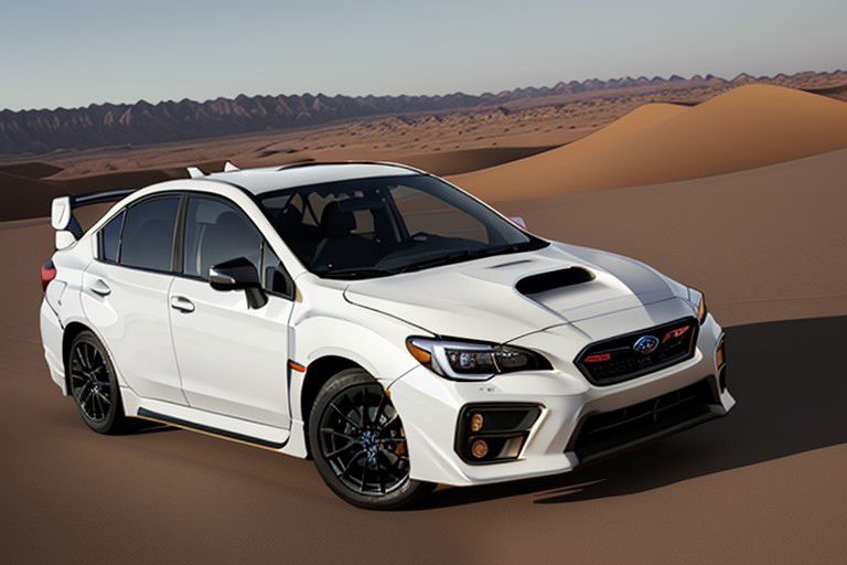 Subaru WRX 2024, car color white, sun, brain, desert,