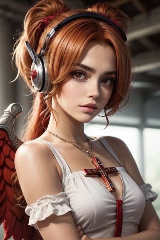 , solo, portrait of goodisis, goodnes ornate, egypt, energy, aura, dust, debris, Face looking, tanned skin, women, Ankh Cross, wings, ankh, Black Eyeliner Ariana Grande-Butera cyber punk Red hair Cara Jocelyn Delevingne lineage 2 blond clothing wet transparent white silk - red army - dark elf lineage 2