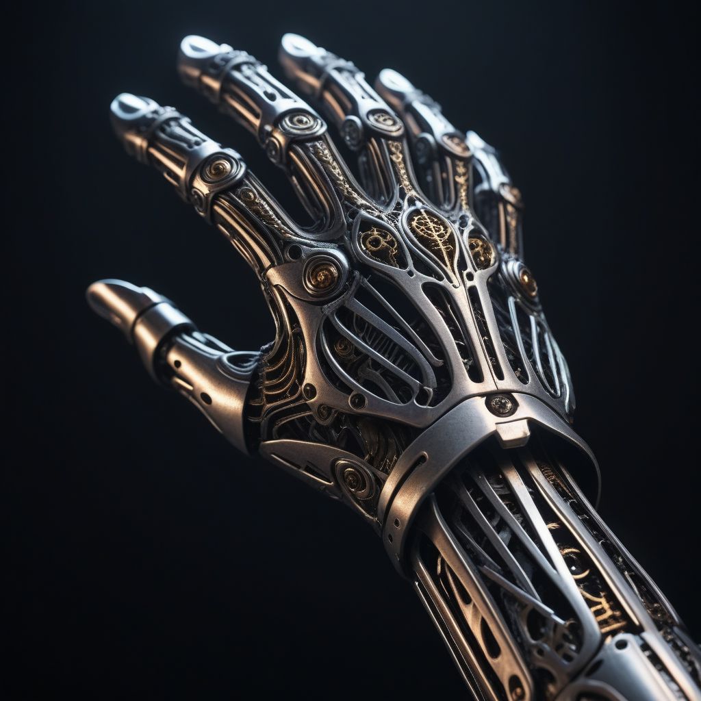cinematic lighting, 8k, sharp focus, cast iron filigree cyborg arm, metal strips, metal plates, sharp, smooth, fluid, straight, rough, curved, open structure