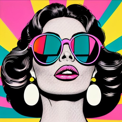 pop art, 1girl, solo, neon plastic 1980s appearance, large funky sunglasses, wearing novelty funky sunglasses, closed mouth, upper body, earrings, lips, looking at viewer, subculture trippy <lora:pop_art_v2:0.7>