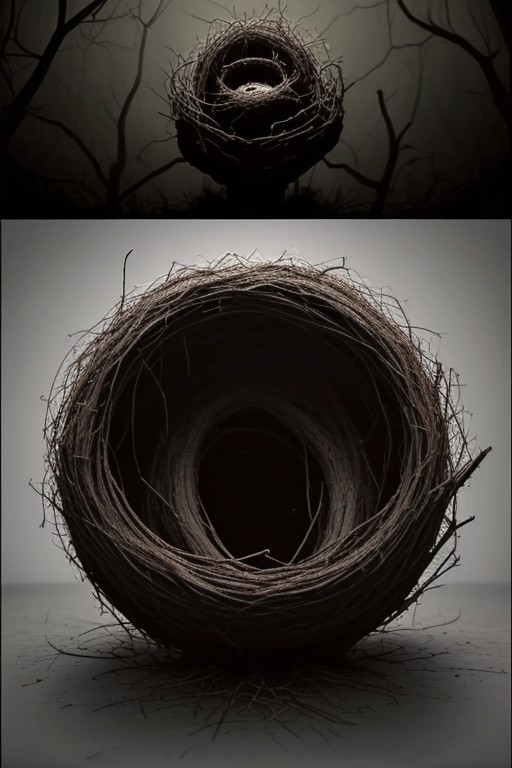The bark of the tree infected by the zombie virus is brown, cut from the middle, and the roots are connected to the lower part. The deep black hole filled with fangs on the cut surface is its mouth. Devouring living things, turning them into zombies and spitting them out, it is the mother nest for mass-produced zombies. FHD, masterpiece, realistic style.