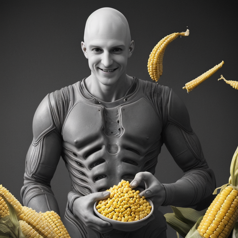 <lora:Engineer:1>Masterpiece,torso shot,Engineer,1man,mature, bald,xenomorph egg colony background,eating corn, engineer, male focus, science fiction, solo,monochrome,smiling,eating corn fungus with two hands