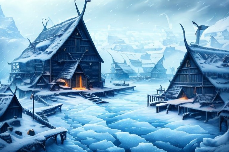 RAW photo, (masterpiece:1.3), subsurface scattering, heavy shadow, (high quality:1.4), (intricate, high detail:1.2), professional photography, HDR, High Dynamic Range, realistic, ultra realistic, photorealistic, high resolution, film photography, ambient lighting, atmospheric effects, <lora:detail_slider_v4:2>, OverallDetail, Ice, <lora:RealmsOfIce:0.8>, a small viking village with a harbor, frozen lake, vivi, <lora:VikingVillage-10:1>, epiCPhoto