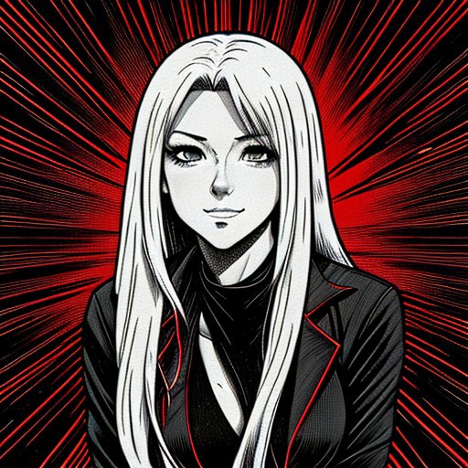 Redhead Anime girl. Duotone: Red- Black. Thick Lines. Strong Lines. Duotone Background.