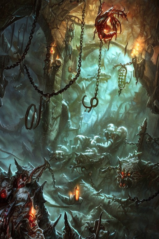 RAW photo, (masterpiece:1.3), subsurface scattering, heavy shadow, (high quality:1.4), (intricate, high detail:1.2), professional photography, HDR, High Dynamic Range, realistic, ultra realistic, photorealistic, high resolution, film photography, ambient lighting, atmospheric effects, <lora:detail_slider_v4:2>, OverallDetail, <lora:Vampire:1>, female vampire in fantasy dungeon, black nails, blood, blurry background, candle, dress, glowing eyes, holding, jewelry, monster, necklace, solo, tattoo, upper body, imprisoned in chains