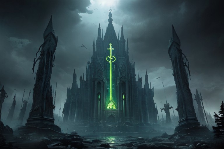 RAW photo, (masterpiece:1.3), subsurface scattering, heavy shadow, (high quality:1.4), (intricate, high detail:1.2), professional photography, HDR, High Dynamic Range, realistic, ultra realistic, photorealistic, high resolution, film photography, ambient lighting, atmospheric effects, <lora:detail_slider_v4:2>, OverallDetail, DarkFantasy, <lora:Evil:0.75>, building, cloud, cross, evilrealm, glowing, holding, monster, no humans, outdoors, pine tree, scenery, sky, water, epiCPhoto