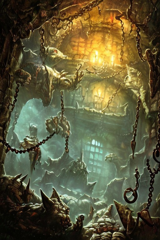 RAW photo, (masterpiece:1.3), subsurface scattering, heavy shadow, (high quality:1.4), (intricate, high detail:1.2), professional photography, HDR, High Dynamic Range, realistic, ultra realistic, photorealistic, high resolution, film photography, ambient lighting, atmospheric effects, <lora:detail_slider_v4:2>, OverallDetail, <lora:Vampire:1>, female vampire in fantasy dungeon, black nails, blood, blurry background, candle, dress, glowing eyes, holding, jewelry, monster, necklace, solo, tattoo, upper body, imprisoned in chains